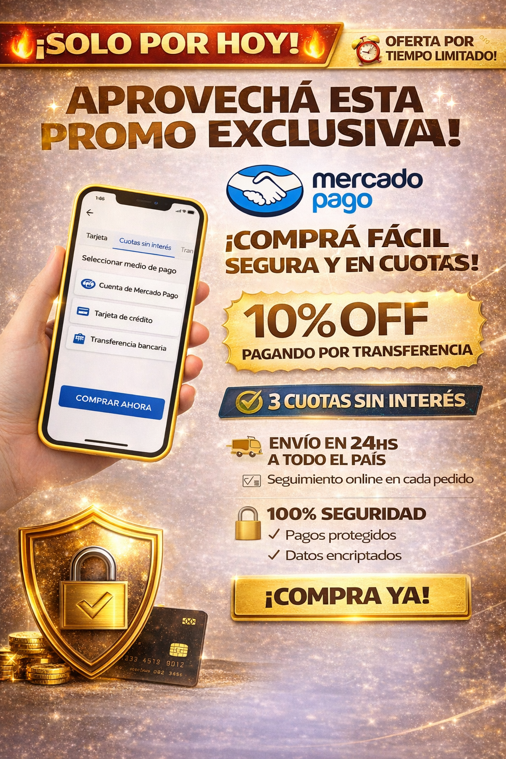 El descuento se aplicará sobre el precio del producto (sin envío) al elegir el medio de pago.